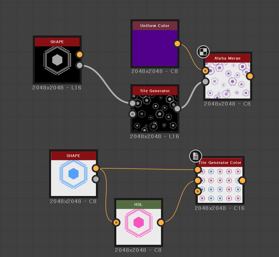 패턴이라는 새로운 노드그래프를 생성해서 아까 만든 아웃풋을 데리고 패턴을 제작해 보았다.