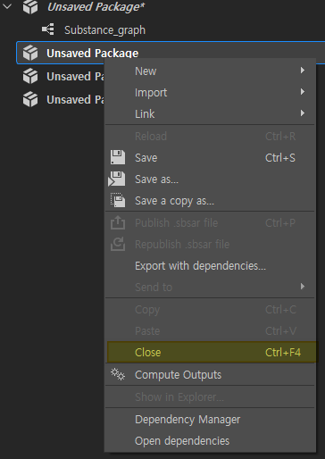 패키지는 왠지 에프터이펙트의 프로젝트파일의 단위같다. 왜냐하면 DEL키로는 지워지지 않고 우클릭을 하면 CLOSE로만 지울 수 있는데 거기에는 무시무시한 단축키가 적혀있다.